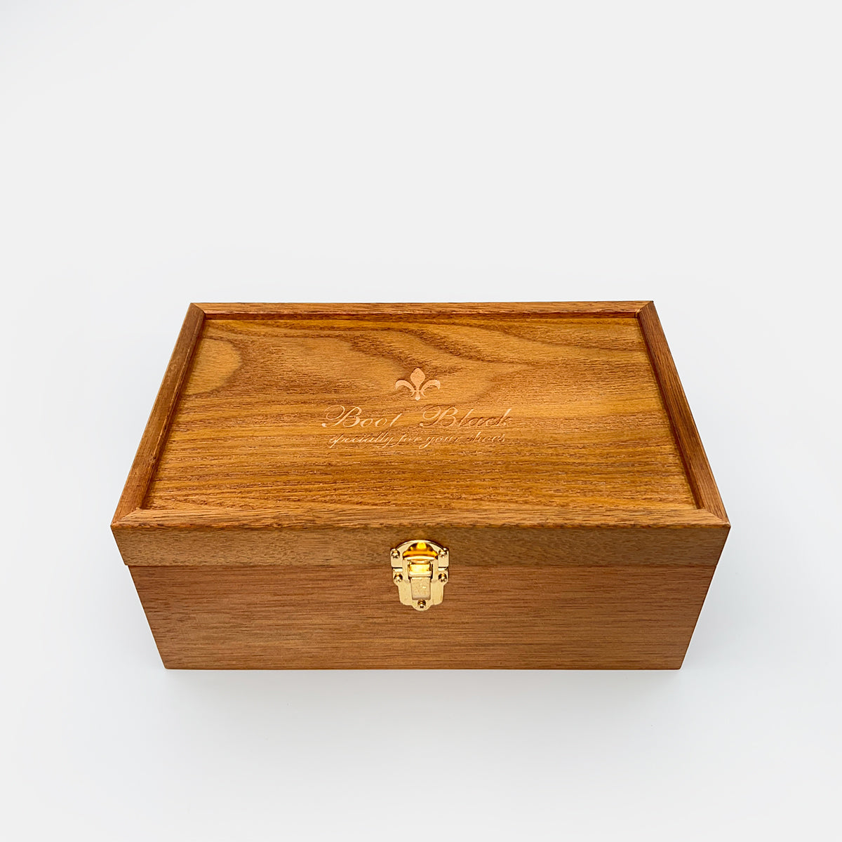 Boot Black premium Balalaika Shoe Care Set has everything you need for professional shoe care. The set includes black and neutral shoe creams, black and neutral wax polishes, a delicate cream, leather lotion, three brushes (light, black, dauber), two cloths, and a shoe shine mitt in a beautiful 175mm×295mm×145mm wooden box.